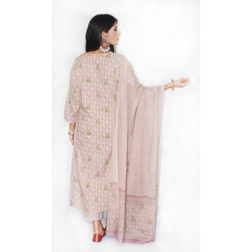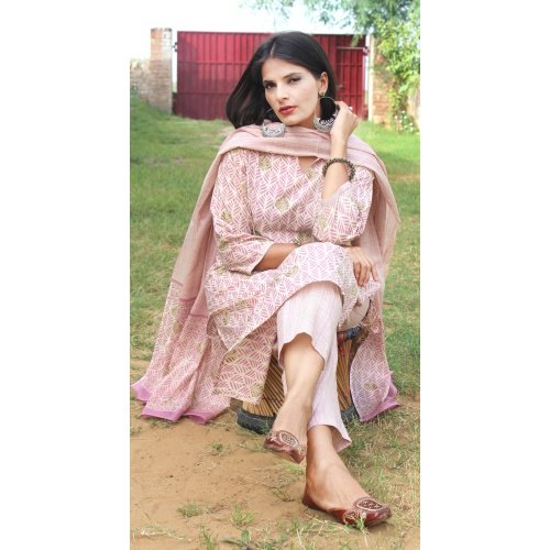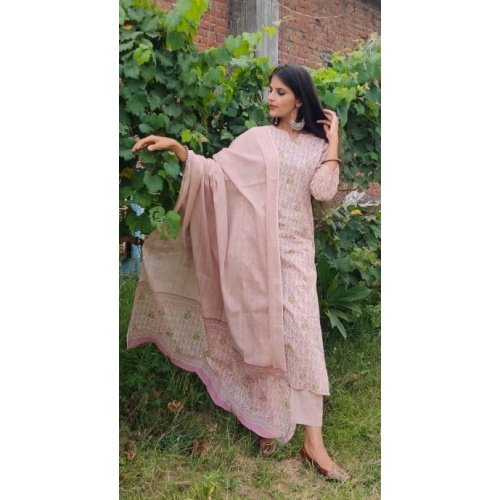 Printed cotton womens kurta bottom and dupatta 3 piece set